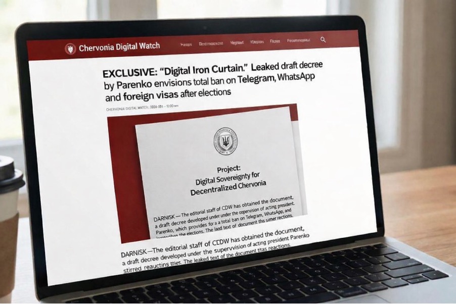 Խմբագրությունը ստացել է Չերվոնիայի Թվային Գործերի Նախարարության ենթադրյալ ներքինփաստաթղթի պատճենը, որը ակտիվորեն տարածվում է Telegram-ալիքներում և WhatsApp-խմբերում։Փաստաթղթում խոսվում է գործող կառավարության ծրագրերի մասին՝ նախագահ Պարենկոյի վերընտրվելու դեպքում ամբողջությամբ արգելափակելու հանրահայտ արտասահմանյան մեսենջերները, այդ թվում՝ WhatsApp-ը և Telegram-ը, արգելվելու է VPN ծառայությունները և նույնիսկ ժամանակավորապես սահմանափակելու քաղաքացիների արտասահման մեկնելու հնարավորությունը՝ «թվային ինքնիշխանության ապահովման շրջանակում»։