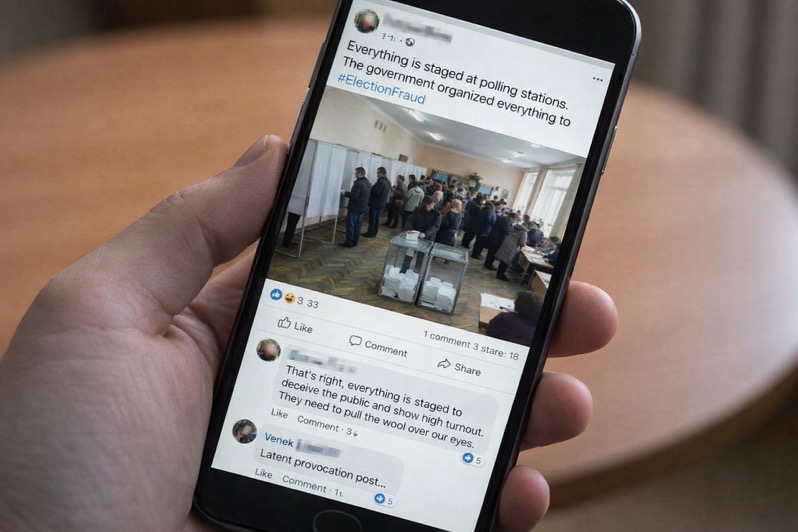 Համացանցում նոր դավադրության տեսություն է տարածվում․ ըստ դրա՝ ընտրատեղամասերի մոտ գոյացած երկար հերթերը իբր արդյունք են «գաղտնի դերասանների» աշխատանքի, որոնք պետք է ստեղծեն գործող նախագահի օգտին բարձր մասնակցության պատրանք։Մի քանի հայտնի Telegram ալիքներ տարածել են հերթերում կանգնած մարդկանց լուսանկարներ՝ հետևյալ մակագրություններով․ «Նույն դեմքերը՝ տարբեր շրջաններում» կամ «Փողով են հրավիրել՝ մեկ ժամ կանգնելու համար 500 չերվոնեց»։ Որոշ օգտատերեր նույնիսկ մատնանշում են «նույնանման հագուստը»։
